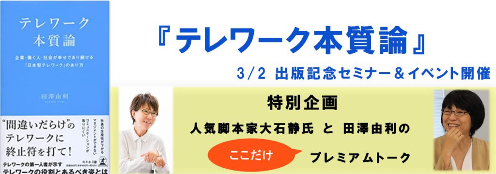 この度、(株)テレワークマネジメント代表取締役 田澤由利が『テレワーク本質論』を新たに上梓いたしました。